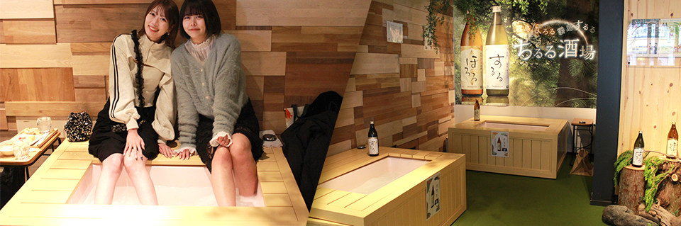 店内の一角には、霧島ほろるが入った「ほろるの湯」と、霧島するるが入った「するるの湯」の焼酎足湯を2台設置。