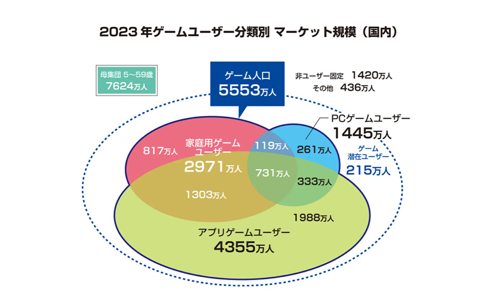 母集団の5歳から59歳の人口が7673万人だから、その約3分の2の人がゲームをプレイしている計算になりますね。
