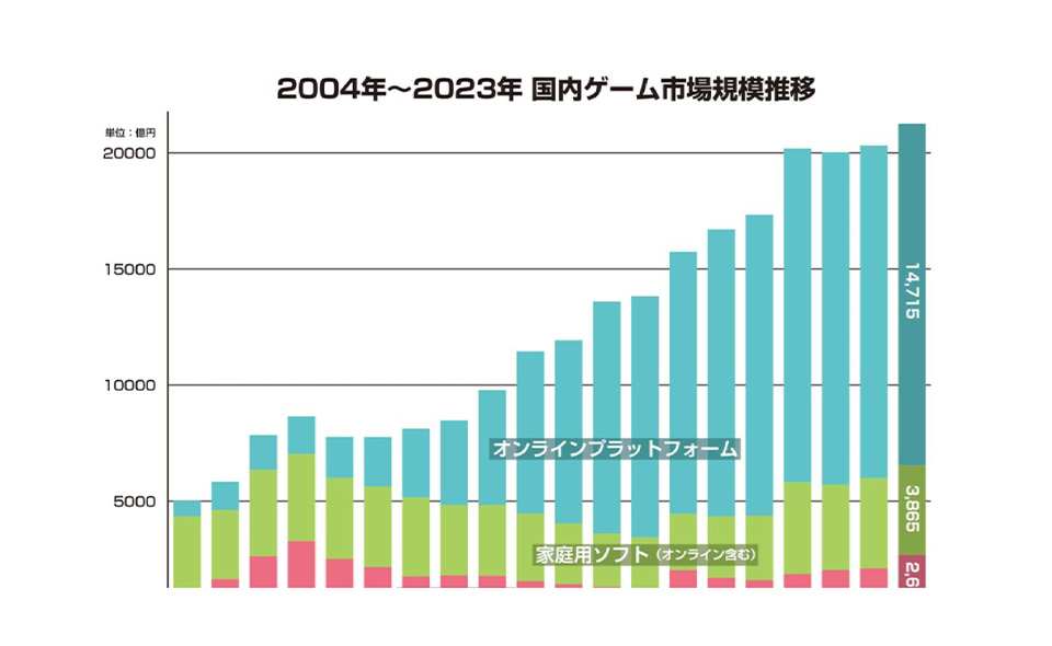 ゲーム市場も右肩上がりで成長しているんだよ。角川アスキー総合研究所のデータによると、2023年の日本のゲーム市場は2兆円を超えているんだ。