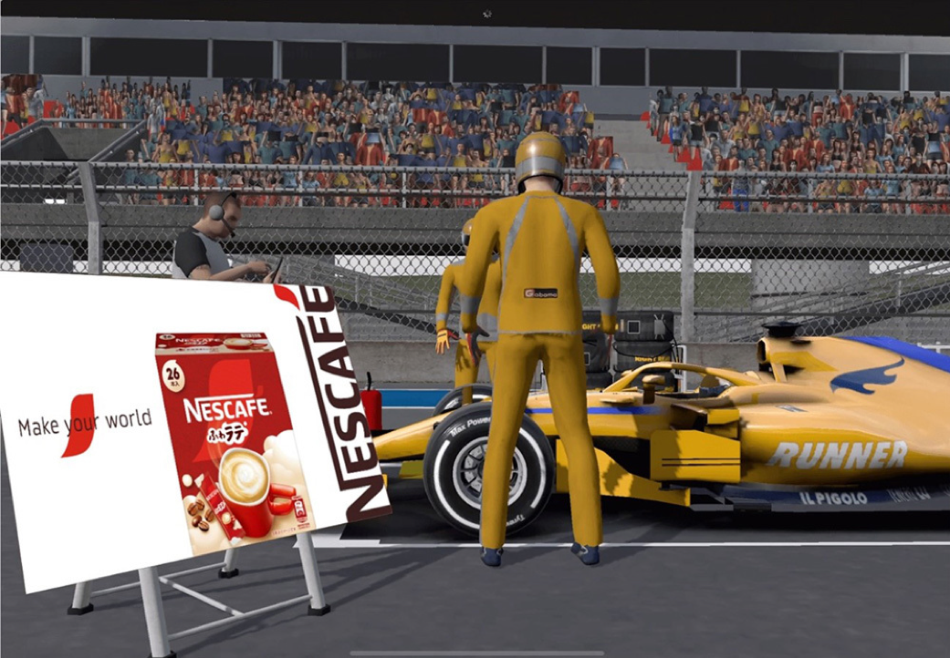 ゲーム空間内に企業やブランド名やロゴ、イメージなどを表示する形。事例として、ネスレのネスカフェがあるよ。2023年秋に刷新した新コンセプトである「Make your world」では、若者にネスカフェを“自分のブランド"と感じてもらうために、ゲーム内広告を使用したんだ。