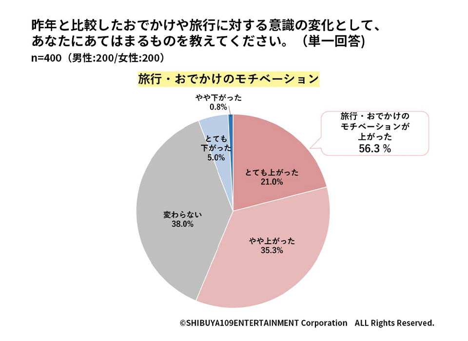 それに、「非日常」を近場で味わえるのもイマーシブイベントの魅力だよ。SHIBUYA 109 lab.の調査によると、コロナ渦での自粛が緩和されてから、おでかけへのモチベーションが上がったと答えた人は、全体の半数以上を占めていたんだ。