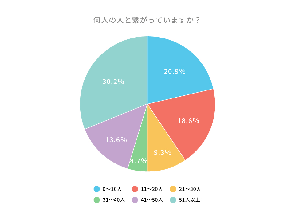 使用頻度と同様に、繋がっている人数には個人差がありますね!
